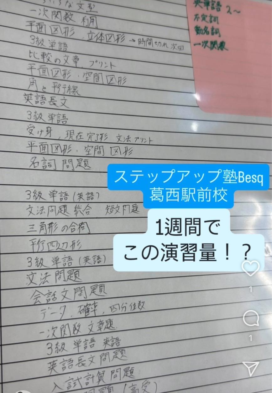 こちらの画像は、わずか1週間で生徒が取り組んだ演習量です。